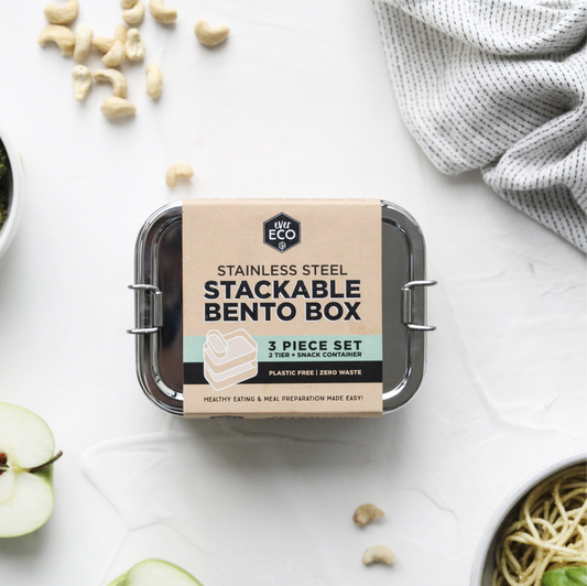 Ever Eco Stainless Steel XL Stackable Bento Box 1900ml, Two Tier + Mini Snack Container