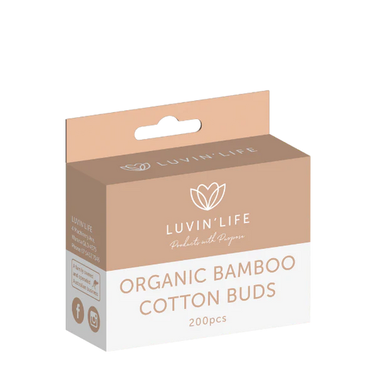 Luvin' Life Organic Bamboo Cotton Buds 200 Pcs, Pink Or Natural Cotton Tip Colour