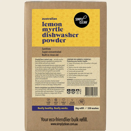 Simply Clean Dishwasher Powder Lemon Myrtle 1kg or 5kg, Naturally Superior Clean