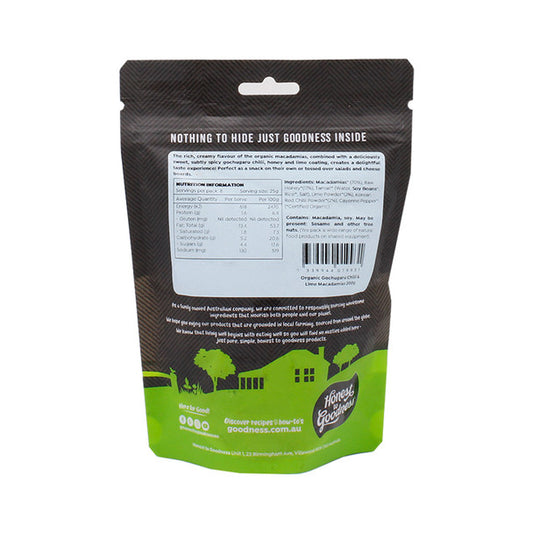 Honest To Goodness Organic Gochugaru Chilli & Lime Macadamias 200g, A Perfect & Healthy Snack