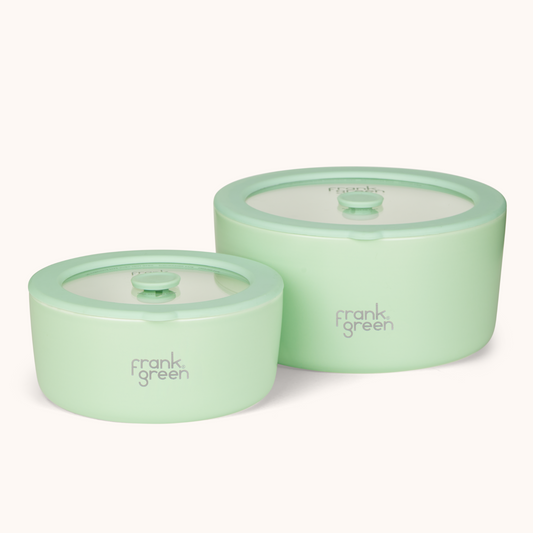 Frank Green Porcelain Bowls With Glass Lids Two Pack 700ml & 1500ml, Mint Gelato