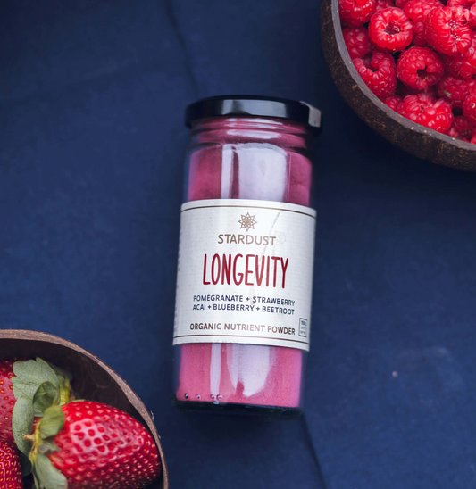 Mindful Foods Stardust Organic Red "Longevity" Nutrient Powder 120g Or 600g, With Pomegranate Acai & Blueberries