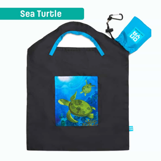 Onya Reusable Shopping Bag Black Sea Turtle, Small Or Large Size