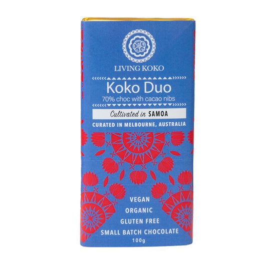 Living Koko KOKO DUO With Cacao Nibs & 70% Dark Chocolate 38g Or 100g, The Purest Form Of Dark Chocolate