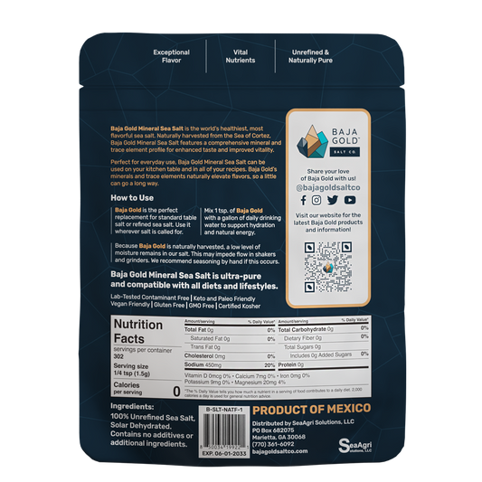Baja Gold Salt Co. Signature Mineral Sea Salt Fine Grind 454g, From The Sea Of Cortez