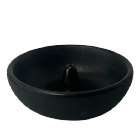 Tulsi Ceramic Round Incense Holder 8.5cm, Black