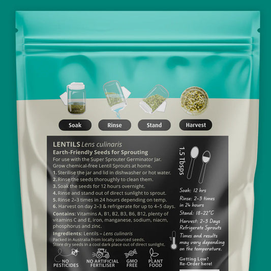 Untamed Health Earth-Friendly Sprouting Seeds 100g, Lentil Seeds