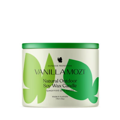 Vanilla Mozi Natural Outdoor Soy Wax Candle 175g, Spearmint & Vanilla Fragrance