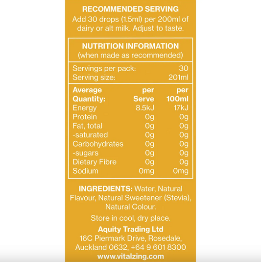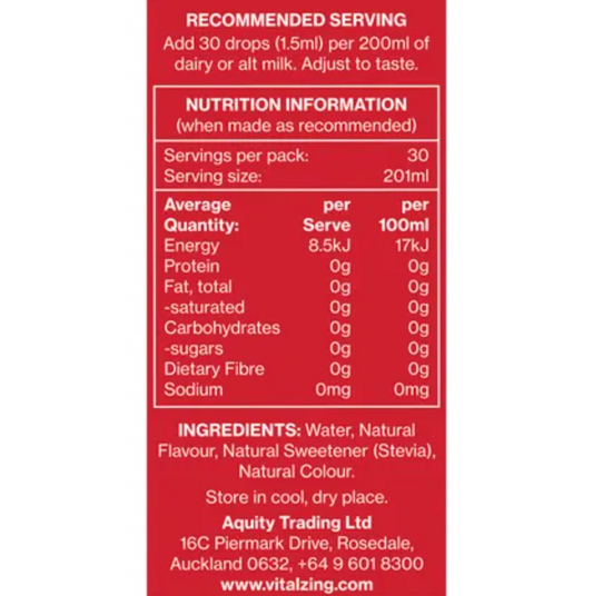 Vital Zing Natural Flavouring Vanilla Cafe Drops 40mL, Sugar & Preservative Free