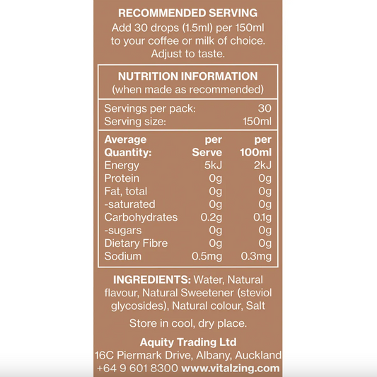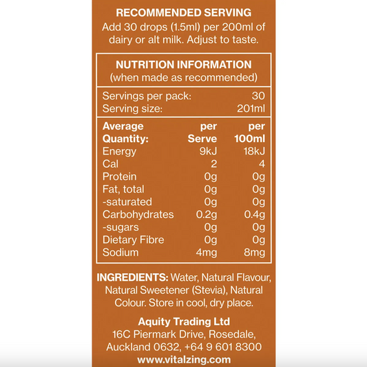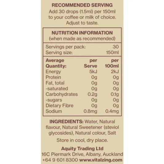 Vital Zing Natural Flavouring Caramel Milk Drops 40mL, Sugar & Preservative Free