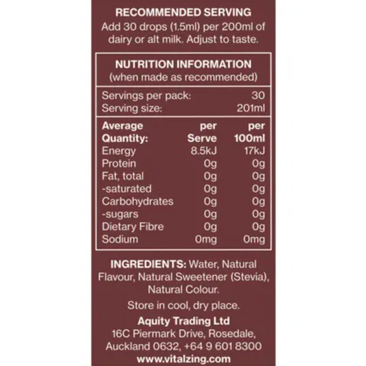 Vital Zing Natural Flavouring Chocolate Milk Drops 40mL, Sugar & Carb Free
