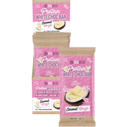 Vitawerx Protein White Chocolate Coconut Rough Bar Single 100g Or A Box of 12, Low Carb & Low Sugar