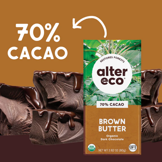 Alter Eco Chocolate 80g, Dark Salted Brown Butter Flavour 70% Cacao, Certified Organic