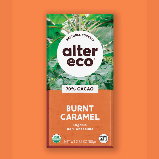 Alter Eco Chocolate 80g, Dark Salted Burnt Caramel Flavour 70% Cacao, Certified Organic