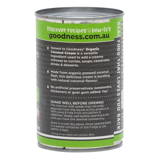Honest To Goodness Certified Organic Coconut Cream 400mL, Thick & Creamy