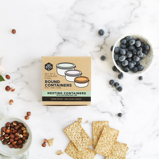 Ever Eco Stainless Steel Round Containers 3 Piece Set, Spring Pastels Collection
