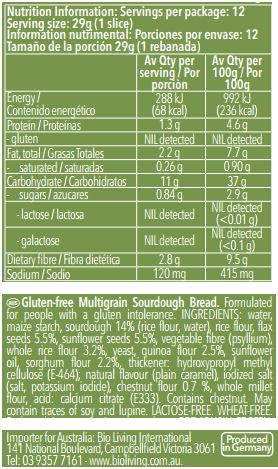 Schar Multigrain Sourdough Bread 300g, Maestro Vital Sliced