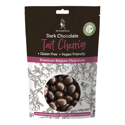 Dr Superfoods Dark Chocolate Coated Tart Cherries 125g, Premium Belgian Chocolate