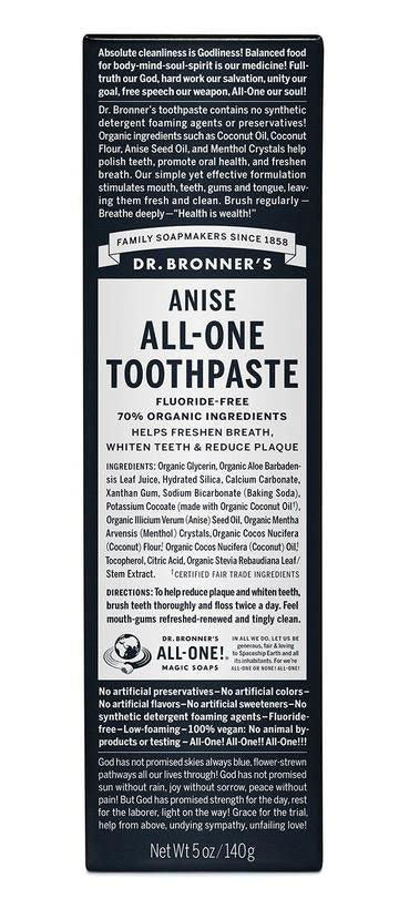 Dr Bronner's Fluoride Free All-One Toothpaste 140g, Anise Flavour