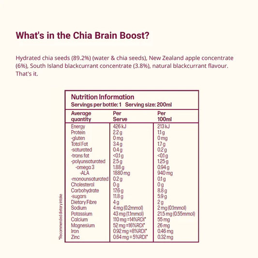Chia Sisters Chia Brain Boost Drink 200mL, Blackcurrant Superfood