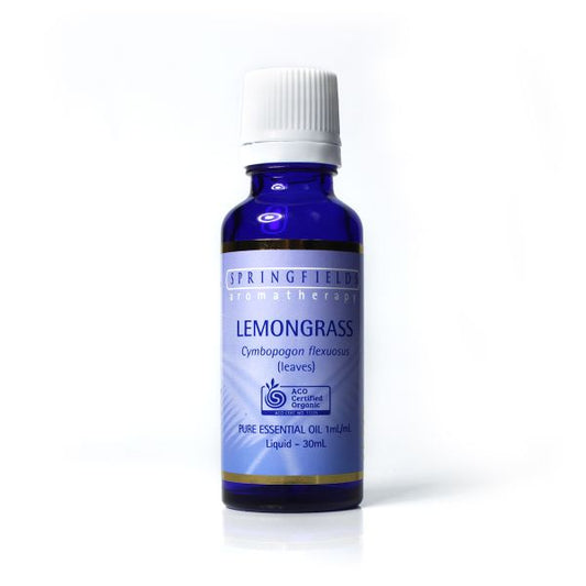 Springfields Aromatherapy Certified Organic Essential Oil; Lemongrass 11mL Or 30mL, Massage For Pain Relief
