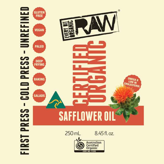 Every Bit Organic Raw Cold Pressed Oil 250ml, Safflower {Unrefined}