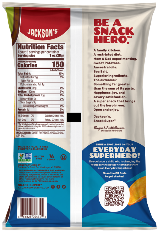 Jackson’s Avocado Oil Sweet Potato Chips 142g, Sea Salt Crunch