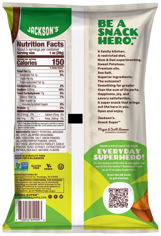 Jackson’s Avocado Oil Sweet Potato Chips 142g, Spicy Jalapeño Heat