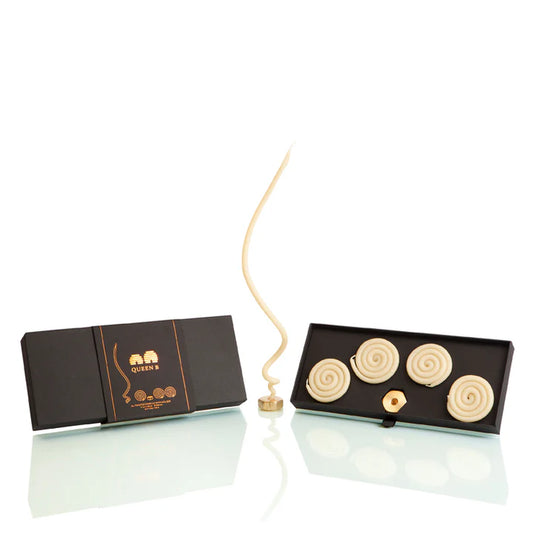 Queen B Pure Australian Beeswax Twisted Candles(4) With Brass Holder(1) - A Black Label Gift Box, +/- 4 Hours Burn Time