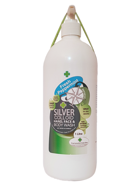 Silver Health Silver Colloid Hand, Face & Body Wash 500mL Or 1L, Fresh Peppermint With Pharmaceutical Grade Silver
