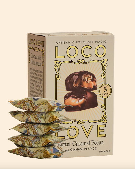 Loco Love Chocolate Five Pack 5 x 35g Bars, Butter Caramel Pecan With Cinnamon Spice