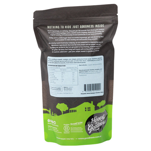 Honest To Goodness Dried Mango Cheeks 300g, Certified Organic