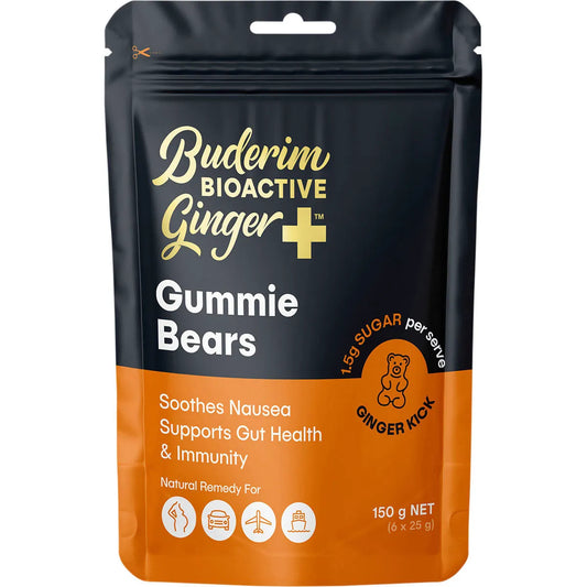 Buderim Ginger Bioactive Ginger+ Gummie Bears 15g Or 150g, Soothes Nausea & Supports Gut Health