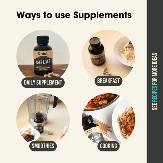 Chief. Organic Grass-Fed Beef Liver 120 Capsules, No Added Hormones Or Antibiotics