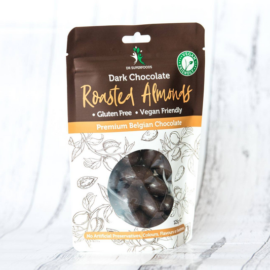 Dr Superfoods Dark Chocolate Coated Almonds 125g, Premium Belgian Chocolate