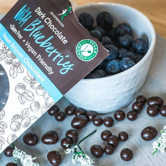 Dr Superfoods Dark Chocolate Coated Blueberries 125g, Premium Belgian Chocolate