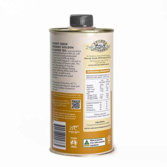 Stoney Creek Organic Cold Pressed Golden Flaxseed Oil 500mL, High In Omega 3 Fatty Acids