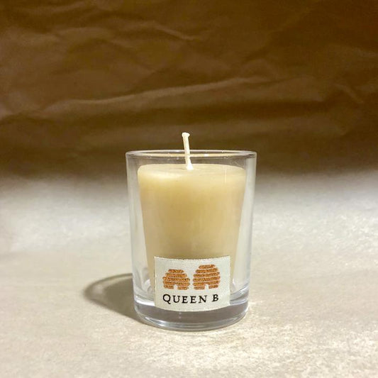 Queen B Pure Australian Beeswax Round Votive Candle In Glass, 15 hour Burn Time