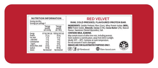 Fibre Boost Cold Pressed Protein Bar Single or Box of 12, Red Velvet Flavour