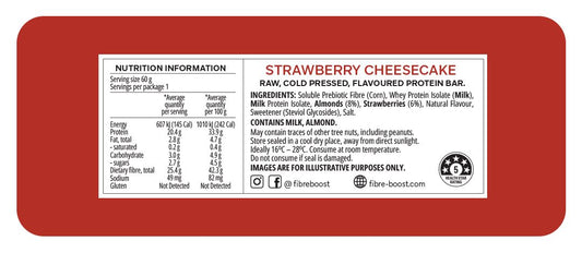 Fibre Boost Cold Pressed Protein Bar Single or Box of 12, Strawberry Cheesecake Flavour