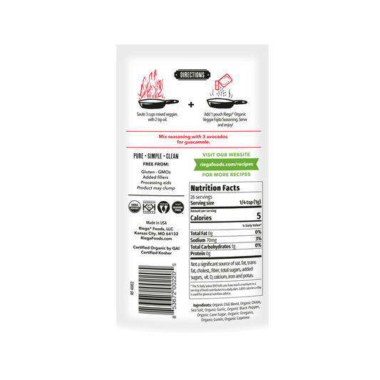 Riega Organic Tex-Mex Veggie Fajita Seasoning 25.5g, Classic & Delicious