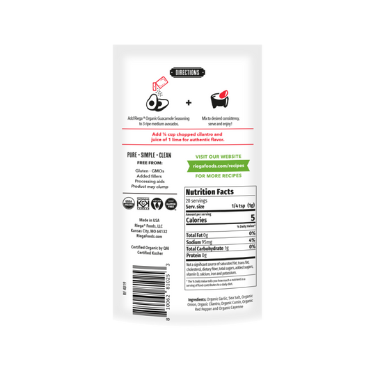 Riega Organic Tex-Mex Guacamole Seasoning 19.8g, Classic & Delicious
