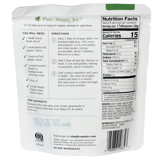 Simply Organic Classic Fajita Simmer Sauce 227g