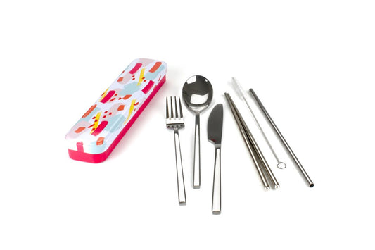 Retro Kitchen Carry Your Cutlery; Stainless Steel Cutlery Set, Colour Splash Pattern