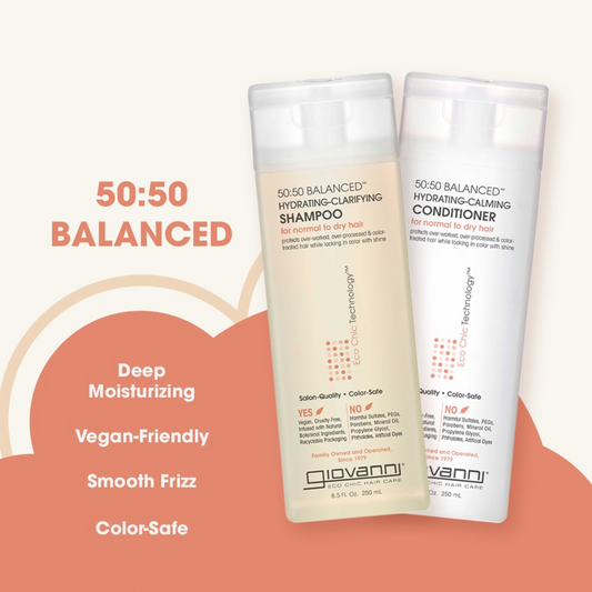 Giovanni 50:50 Balanced Hydrating-Clarifying Shampoo, For Over-Processed & Environmentally Stressed Hair, 60mL or 250mL