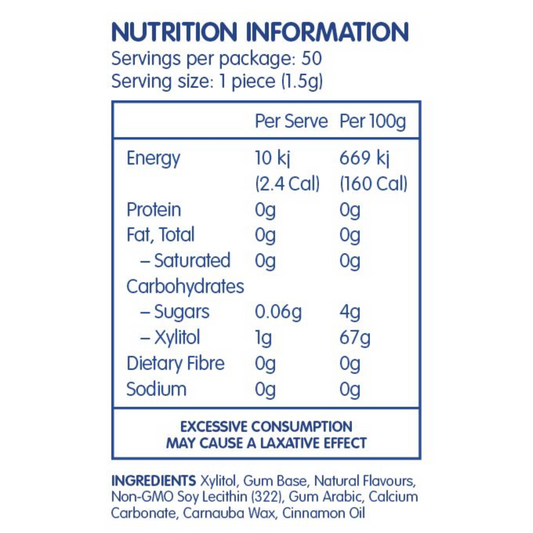 Epic Sugar-Free Xylitol Chewing Gum 50 Pieces, Cinnamon Flavour
