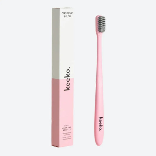 Keeko One Good Brush - Biodegradable Toothbrush Baby Pink & Sky Blue, Soft Bristles
