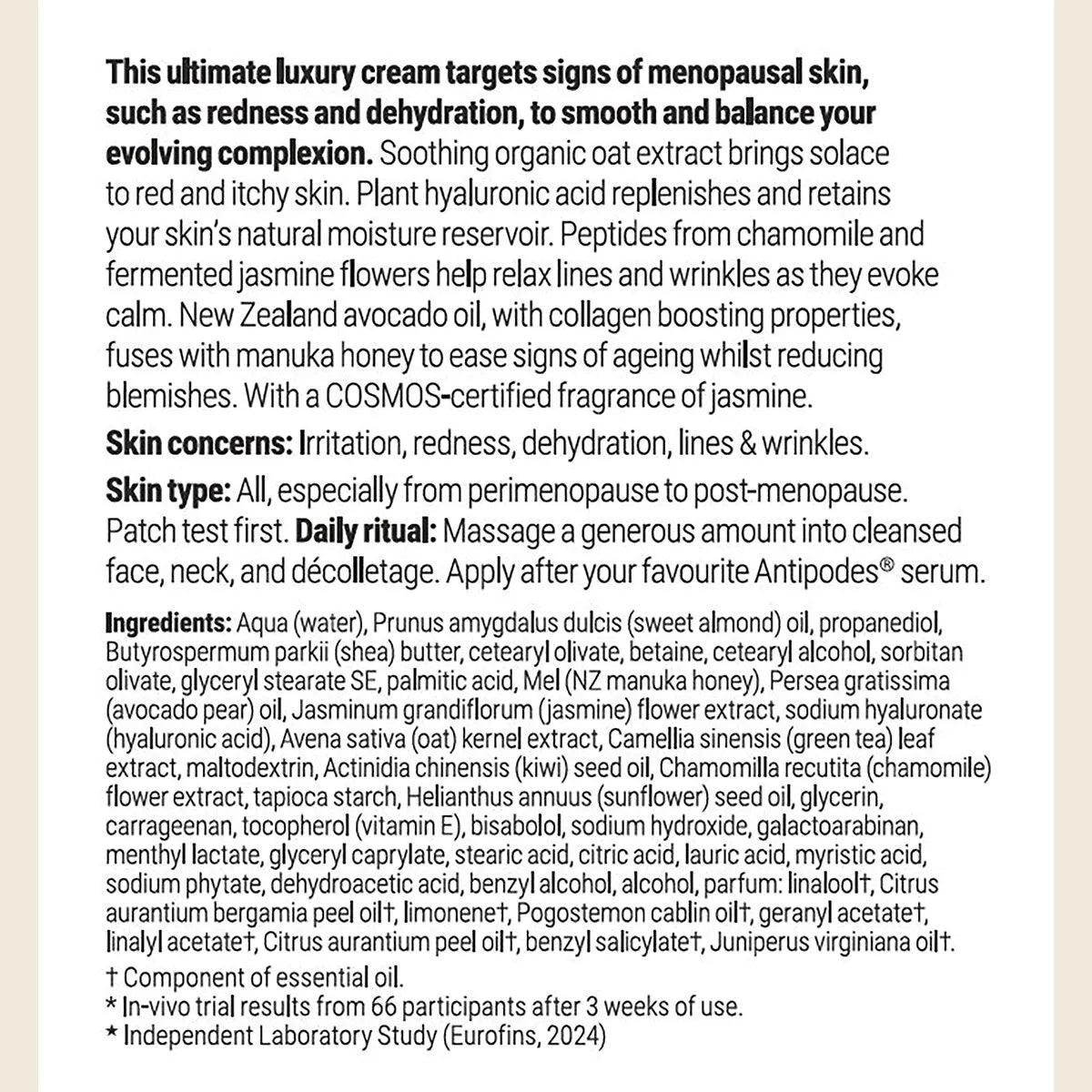 Antipodes Jasmine Flower Menopause Facial Cream 60ml, Cooling Comfort Hydration