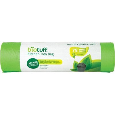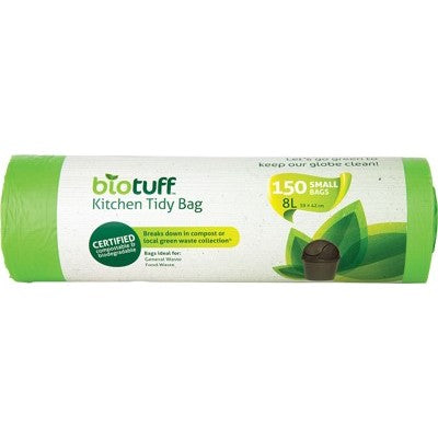 BioTuff Kitchen Tidy Bag Small 8L 25 Bags, 75 Bags Or 150 Bags, With Tie Handles