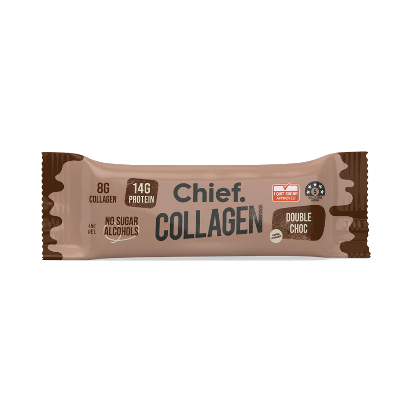 Chief. Collagen Bar Single Bar 45g Or A Box Of 12, Double Chocolate Flavour